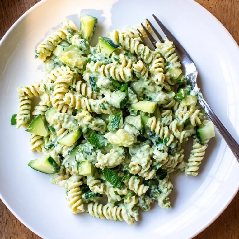 - Toss cooled pasta with cucumber spinach and all those gorgeous fresh herbs in a large bowl then pour the dressing over and mix gently until every piece is coated.