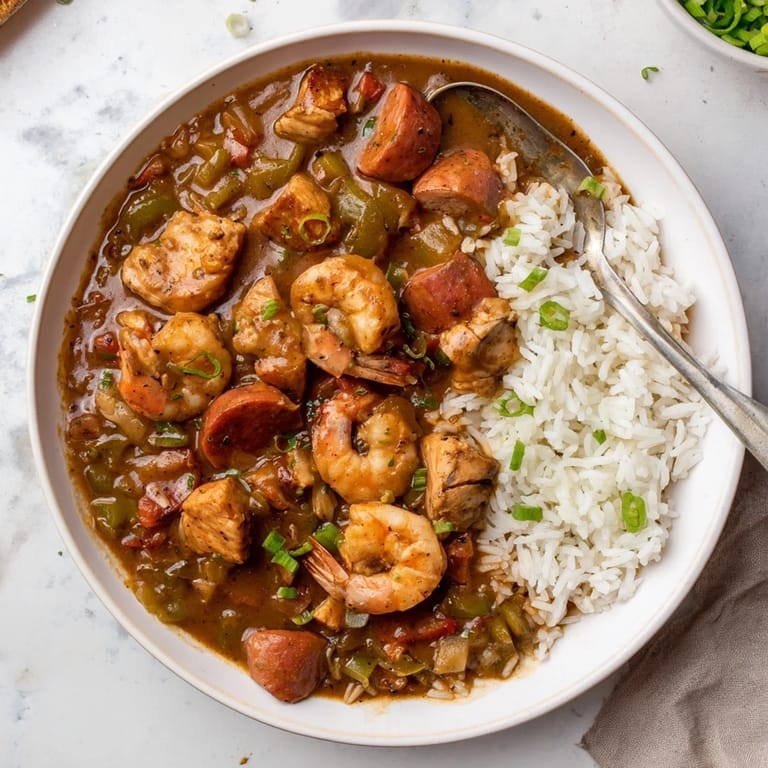 Save This gumbo has become my go-to for bringing people together, whether it's a Mardi Gras party or just a Tuesday night when someone needs comfort. There's something about the ritual of serving it over rice, watching everyone customize their bowls with hot sauce and fil powder, that turns dinner into an event. I've learned that the best gumbo isn't made with precise measurements but with intuition—tasting, adjusting, and cooking until it tastes like home.