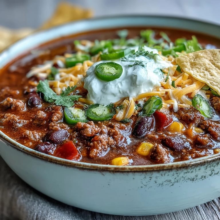 Set up a topping bar with shredded cheese, sour cream, jalapeños, cilantro, green onions, crushed chips, and lime wedges. Watching everyone customize their bowl is half the fun.