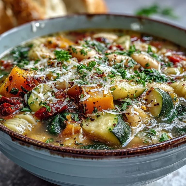 Save There's something about November that makes me crave a pot of minestrone—that precise moment when the farmers market switches from summer abundance to sturdy winter vegetables. My neighbor once described hers as "edible comfort," and I finally understood what she meant when a steaming bowl of this soup arrived on my doorstep during a particularly gray week. The butternut squash melts into sweetness, the kale holds its earthy integrity, and somehow the whole thing tastes like someone who cares made it just for you.